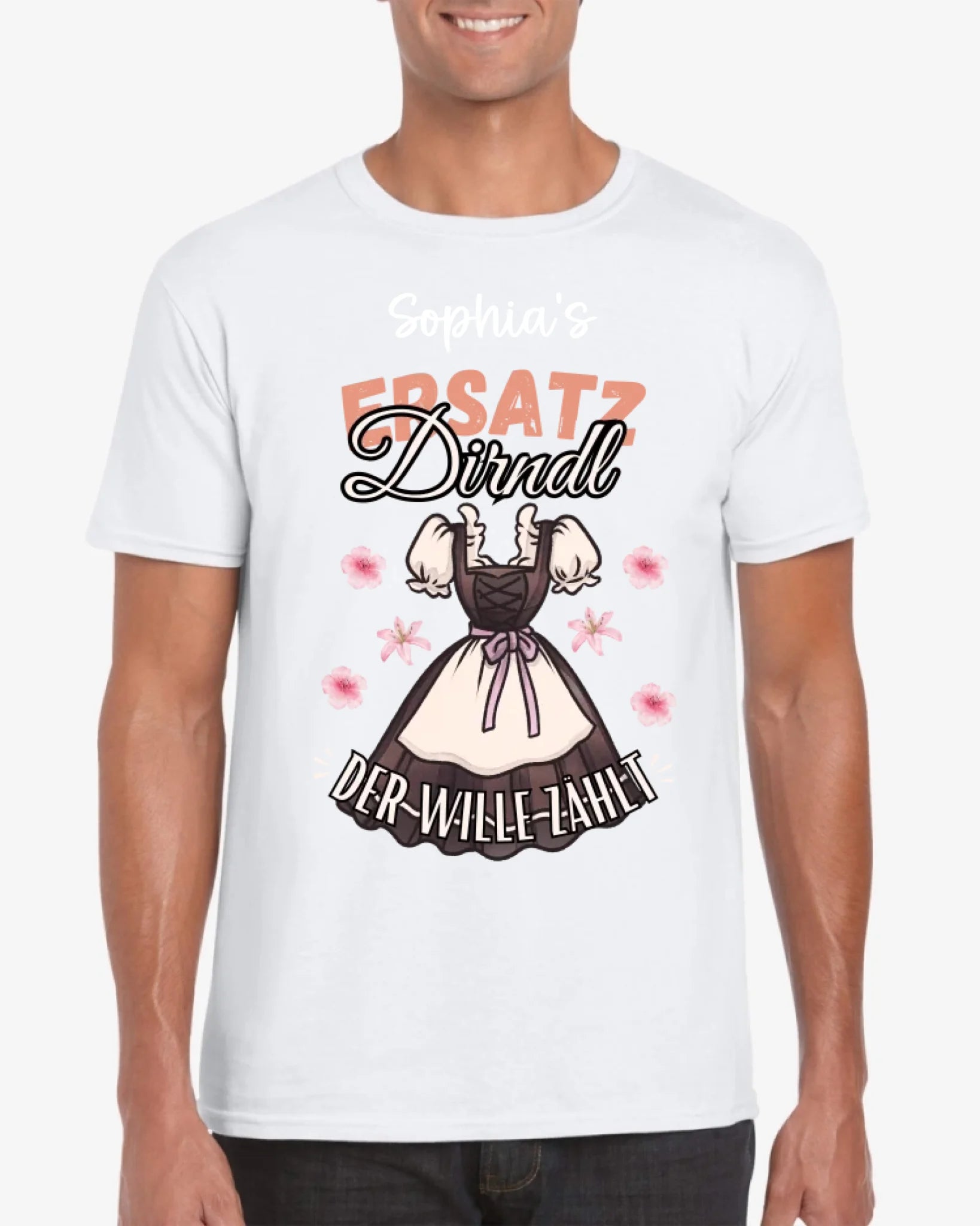 Ersatz Dirndl - Personalisiertes T-Shirt (100% Baumwolle, Unisex) Oktoberfest, Tracht-Ersatz, Wiesn, Kerwa