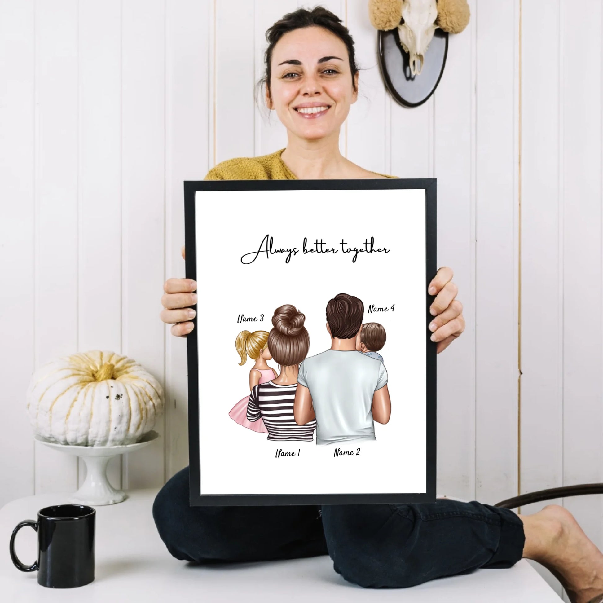 Famiglia felice - Poster Personalizzato (Genitori con 1-4 bambini)