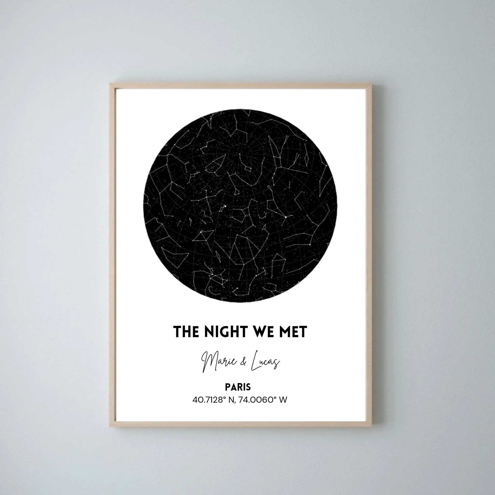 Notre ciel étoilé, The night we met - Poster personnalisé avec carte du ciel, signe astrologique