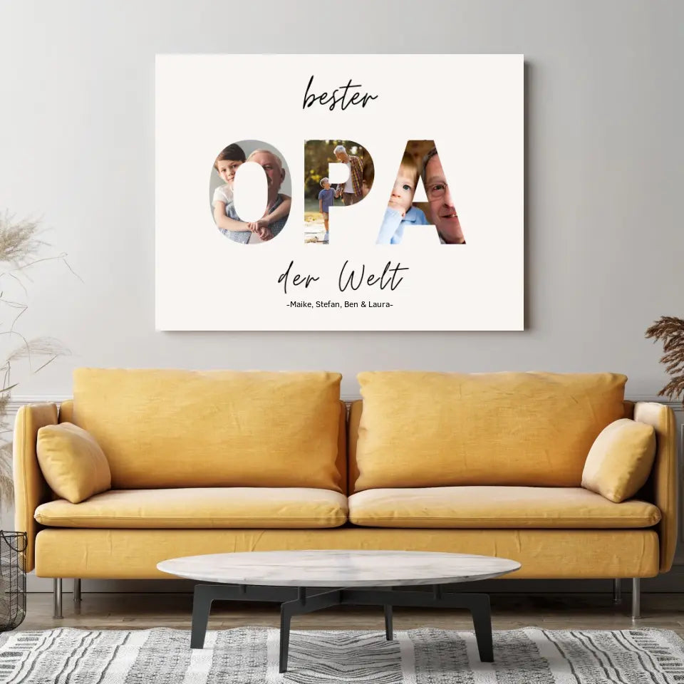 Bester Opa auf der Welt - Personalisierte Foto Leinwand (3 Bilder)