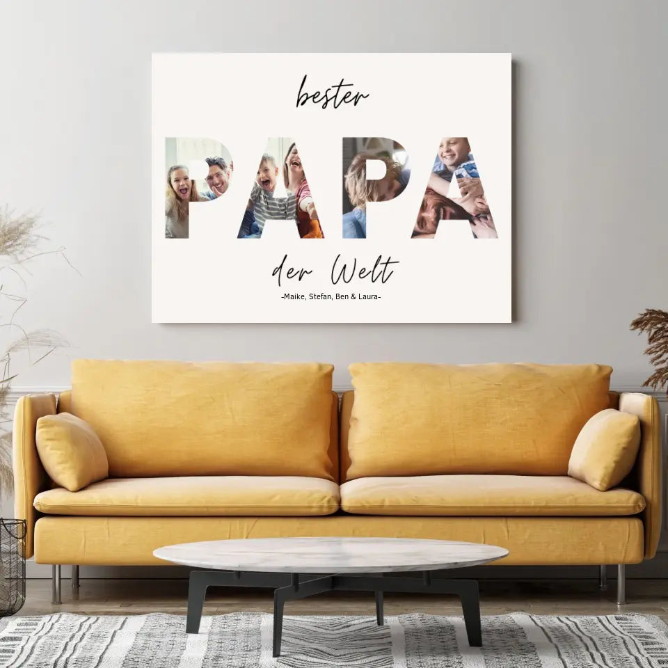 Bester Papa auf der Welt - Personalisierte Foto Leinwand (2 Bilder)