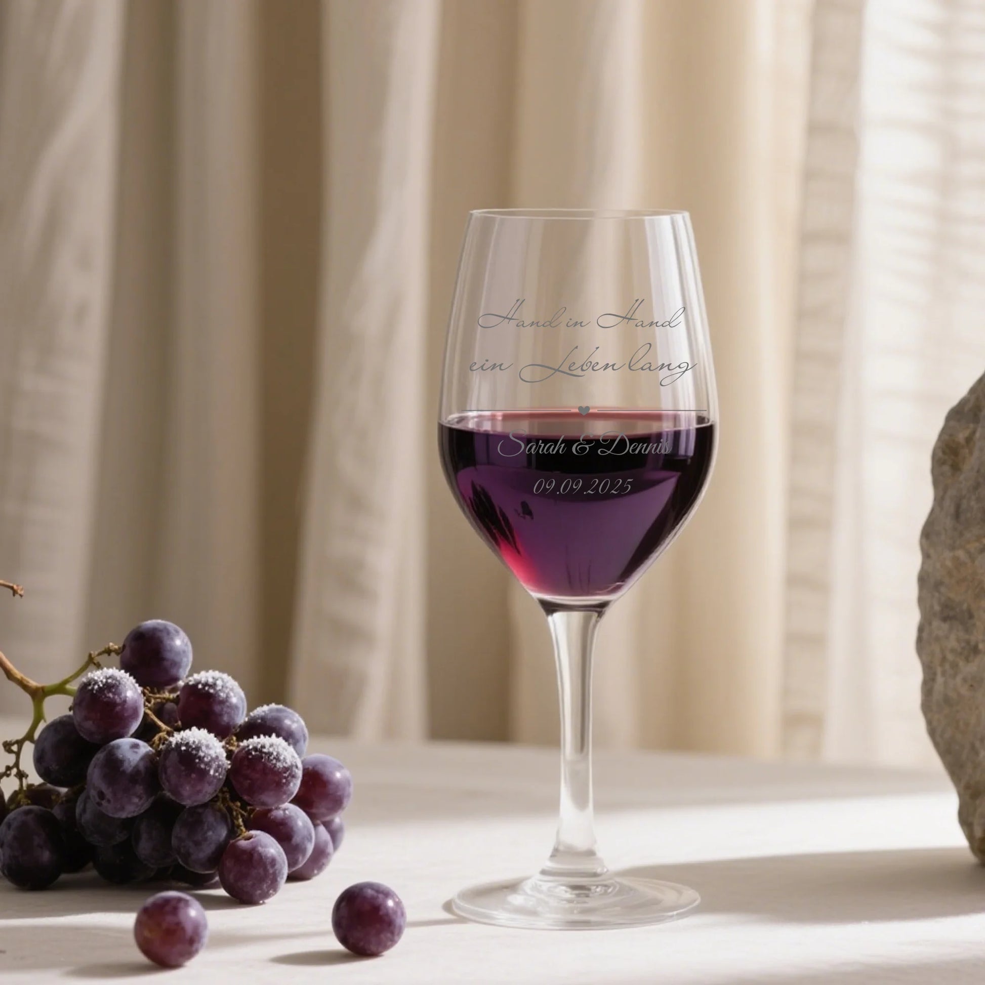 Personalisiertes Weinglas - Hand in Hand, ein Leben lang (für Pärchen, Partner), Verlobung, Hochzeit, Jahrestag